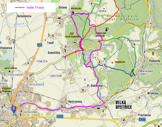 Na sobotu jsem měla naplánovaný výlet na Svatý Kopeček a i když na to počasí v pátek ani v sobotu ráno moc nevypadalo, přece jen jsme se Sandy vyrazily a udělaly jsme dobře. Nádherně se vyjasnilo a skoro celou cestu nás doprovázelo sluníčko. Ráno jsme dojely busem na Kopeček, v 9 jsme vyrazily po modré značce podívat se na Kartouzku (zbytky kartuziánského kláštera) u Dolan. Cesta byla příjemná, jen na ušlapaných místech na lesních cestách byla vrstva ledu, tak to bylo občas krkolomné. Pokračovaly jsme do Nových Sadů, kde jsme se napojily na značku naučné stezky do Radíkova. V Radíkově jsme pokračovaly po zelené směrem k Lošovu. V lese se mi ztratila zelená značka, ale díky radě jedné paní výletnice, kterou jsme potkaly, jsem objevila značku modrou, která nás dovedla přímo do Lošova. Podotýkám, že já neznalec místního okolí jsem si s sebou nevzala ani mapku a spoléhala jsem se na rozcestníky a na kvalitní značení (a na své asi dost nekvalitní oči :-)), takže to, že se mi podaří zabloudit, bylo naprosto nevyhnutelné :-). No ale tam, kam jsem chtěla, jsme nakonec došly a protože bylo opravdu nádherně a zpátky na Kopeček se mi už vracet nechtělo a Sandy navíc pořád sršela energií, tak jsme na rozcestí u Lošova vyrazily dále po zelené do Velké Bystřice, kde jsme pokračovaly po žluté značce kolem řeky Bystřice až do Olomouce. Po krásném dni v přírodě se mi nechtělo jít pěšky přes Olomouc a taky už jsme toho měly obě se Sandy dost, tak jsme v Hodolanech sedly na tramvaj. Dost jsem se styděla, protože jsme byly obě zablácené od hlavy až k patě a ze Sandy se navíc linul nezaměnitelný smrad (našla si totiž po cestě pěkně odporné h…o, ve kterém se s obrovskou chutí vyválela a i přes drhnutí sněhem i vodou z potoka to z ní bylo cítit pořád). No a tramvaj, jak už to tak bývá, byla nacpaná lidmi k prasknutí :-). Domů jsme dorazily po půl páté. Provedly jsme důkladnou koupel, pak se Sandy nabaštila a zachumlala se do pelechu. Dvě hoďky si schrupla a pak už byla potvůrka zase u mě, ať jí házím míček a přetahuju se s ní….a to jsem si myslela, že už od ní budu mít po takové dlouhé procházce pokoj :-)….