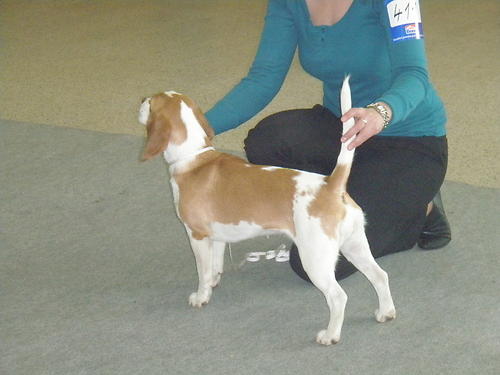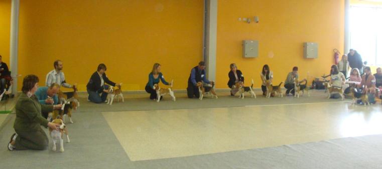 Původní plán výletu byl takový, že vyrazíme do Ostravy s přítelem a budeme tam až do neděle u kamarádů slavit narozeniny jednoho z nich, ale jak už to tak bývá, ze všeho sešlo, takže jsem nakonec vyrazila se Sandy sama jenom na otočku. A vůbec ale vůbec se mi nechtělo. Na výstavě jsme ale dopadly dobře, tak to nebyla zbytečná cesta. Dostala jsem na narozeniny rozkládací křeslo na výstavy, tak mi to nedalo a vzala jsem ho s sebou. Cestovat vlakem nevyspaná, se psem a se spoustou věcí tak bylo velmi zajímavé. Ale dorazily jsme v pohodě, na místě jsem křeslo rozložila a pak na něm samozřejmě skoro vůbec neseděla :-). Sandy byla dost nervózní ze všech těch psů kolem, tak jsem s ní musela chodit často ven. Při jedné krátké venčící procházce se mi podařilo dokonale propásnout šiperky, které jsem chtěla vidět. Bylo jich na výstavě asi jen 6 a byly v našem kruhu před bíglíky. Když jsme se vrátily ke kruhu, byli tam už nastoupeni bígli ve třídě mladých. No nic :-). Tak jsme se alespoň podívaly, jak se daří Bročkovi z ch.s.Weinlinie, se kterým Sandy trávila své první dny života a Baudíkovi, kamarádovi výletníkovi, a ani jsme se nenadály a už jsme byly na řadě. Posuzoval pan rozhodčí M. Václavík. Sandy byla skvělá, pěkně běhala, ukázala v pohodě zoubky a vydržela stát v postoji. Kazila jsem jí to jen já, protože ji pořád ještě neumím postavit do pěkného postoje. V naší třídě s námi soupeřily kamarádky výletnice Bianca a Mia a já, jak jsem vždycky z těch výstav vedle, vůbec nevím, jak holky dopadly. Pan rozhodčí postupně vyřadil několik velmi dobrých a my jsme nakonec získaly známku VÝBORNÁ.